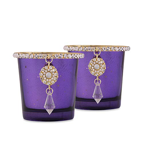 Silver Glass Votive with Jewel Ring and Dangler Violet