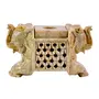 Soap Stone Carved 2 Elephant Face Candle Stand (13cm x6.5cm x8cm)