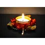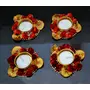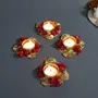 Tea Light Candle Holder for Diwali Decoration Traditional Golden Tea Light Holder for Home Decor Decorative Designer Tlights Handmade Red Flower Design Golden Diya (Set of 4)