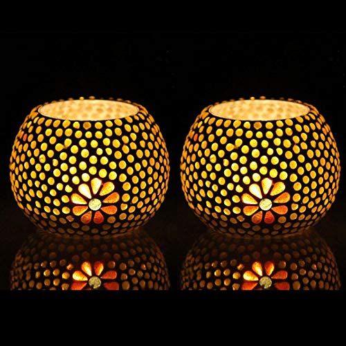 The Purple Tree Glass Mosaic Candle Holder (Pack of 2) Diwali Candle Holder tealight Holder Diwali Gift Best Gift for Diwali Decor Christmas Candle Holder Diwali Decoration