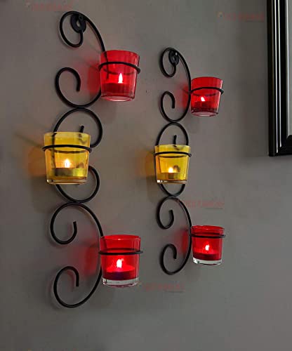 • Hand Crafted from Iron give it beautiful finish and long life. Just light the Tealight into the Glass Cups and let your walls glow with the rich look.