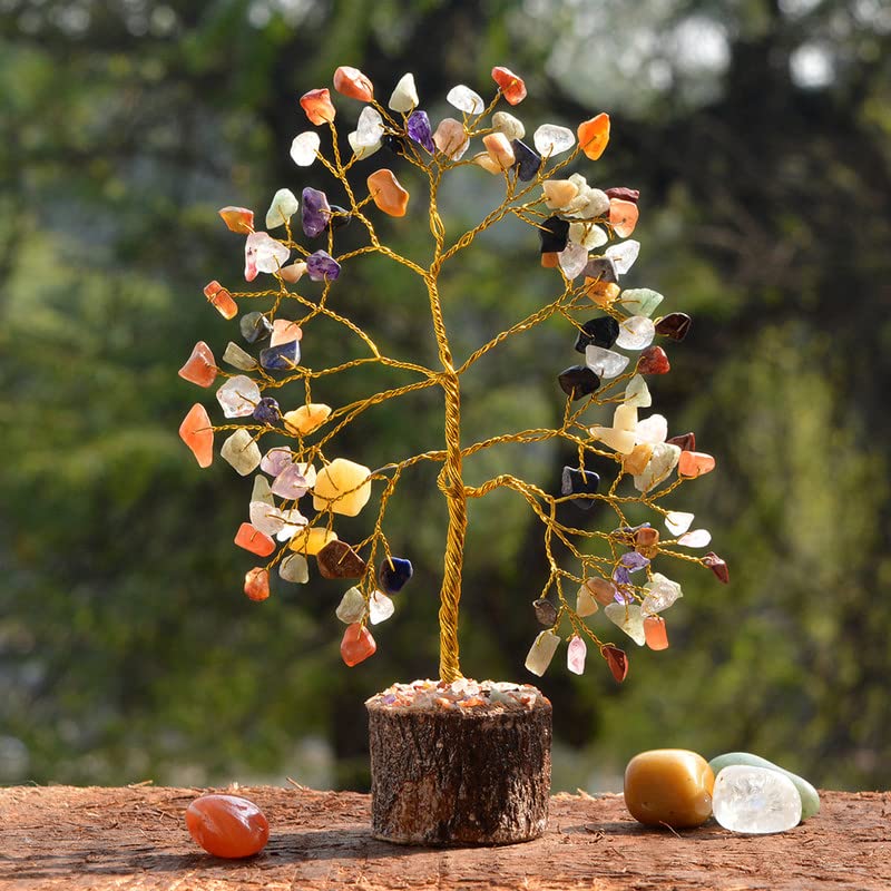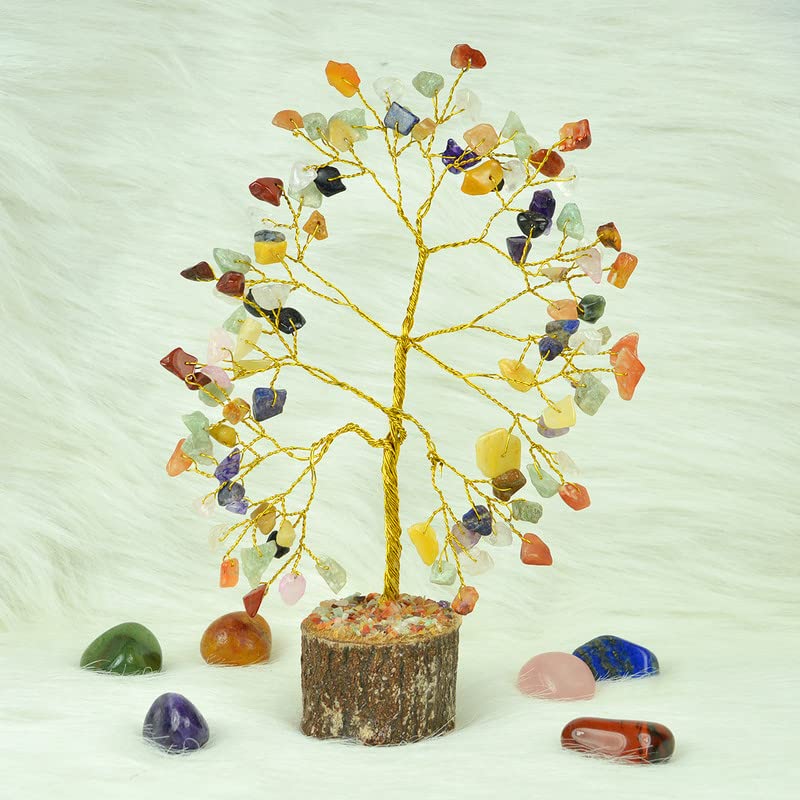 * Natural Crystal Stone 7 Chakra Tree 100 Beads. Charged By Reiki Grand Master & Vastu Expert. * 100% Authentic Original and Natural Healing Stone / Crystal - small holes crack marks on the surface or inside the stones are often visible. * Material : Natural Healing Stones See Images & Product Description For Healing Properties /Advantages. * Can be used for Reiki Healing Feng Shui Vastu Crystal Healing Meditation Vastu correction Reiki Grid and Aura Cleaning* 7 Chakra Crystal Stone Tree Suitable for Home & Office Decoration / Collecting / Study / Gifts / Feng Shui and Vastu Correction