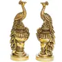 Aakrati Pair of Handmade Small Sitting Brass Peacock Figurine Showpiece