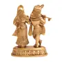 Decorate your interiors in an interesting manner with this classy showpiece featuring the figurine of lord krishna with goddess radha. Apart from being worshipped this amazing showpiece can be placed in your living room or in your office. The statue is made up of brass adorned in a antique gold finish with a protective coating over it.