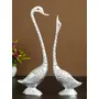 eCraftIndia Silver Metal Handcrafted Swan Couple Statues Love Birds Figurines Decorative Showpieces - Romantic Feng Shui Idols - Ideal For Wedding, New Year, Valentine's Day Gifts As Home Office Decor