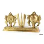 eSplanade Brass Shankh Chakra Namah Showpiece | Shankha Chakra Tilak | Shankha Gada Padma | Padmanabha Swami Vishnu | Home Decor | Golden-Brown - 8.75" Inches (L)