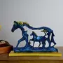 Karigaari - Ideas Hand Crafted Handcrafted PolyResin Horse with Horse Baby on Stand Showpiece Home Decor/Office Decor/Living RoomBlue