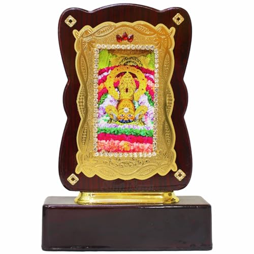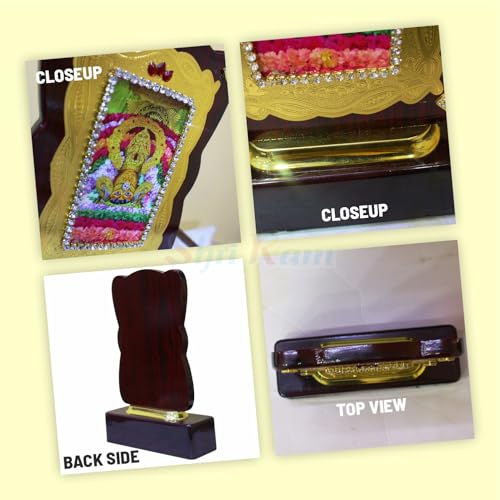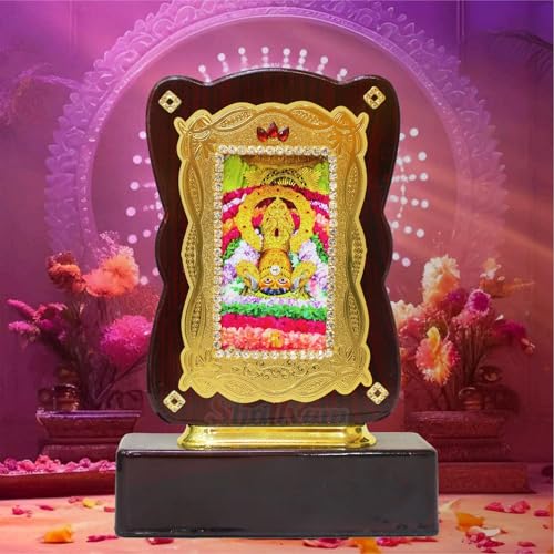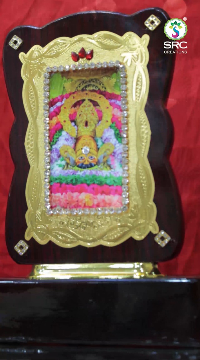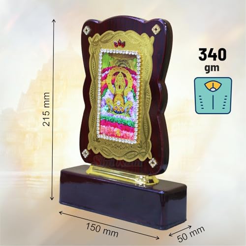 Elevate your spiritual space with this exquisite Khatu Shyam photo frame masterfully crafted with premium materials and intricate detailing. The divine image is beautifully enhanced by a luxurious golden sheet border featuring delicate stone decorations and a crystal-clear gloss polish finish. The wooden shield design adds a traditional touch while the heavy-duty plastic base ensures stable placement. Measuring 215 mm in height 150 mm in width and 50 mm in depth this lightweight yet sturdy frame weighs just 340 grams. The rich mahogany-coloured frame is adorned with decorative corner elements and features a vibrant image surrounded by colourful floral arrangements. Perfect for home temples prayer rooms or as a thoughtful gift for religious occasions this frame combines devotional significance with artistic craftsmanship. The convenient size makes it suitable for placement on tables shelves or wall-mounted displays bringing divine presence to any corner of your home.