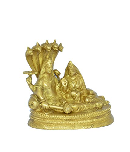 Lord Vishnu is depicted as relaxing on Sheshnag – a five-headed snake that is coiled and floats on cosmic waters that exemplifies the peaceful and harmonious universe. In this divine brass statue Goddess Lakshmi is also depicted as sitting beside Lord Vishnu on the Sheshnag. This intricately crafted statue is ideal to be placed in the Pooja Room or even in the workplace. Also accomplishes to be a wise return gifting option to your beloved guests for all auspicious occasions.