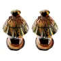 WOOD CARVING WORK TERRACOTA CLAY MINIATURE TRIBAL HOUSE PAIR (Multicolour hand-painted small and circular with conical roof); suitable as paper weight shelf/desk accessory; ideal showpiece for home dcor and gifting purposes (2 Pieces) Diameter: 3 inches X Height: 4 inches; 180 Grams). The traditional house types of tribals characterised by circular plan with conical roof is called Chhendidien. Circle is the shape of choice because circular houses are strong energy efficient good for ventilation and air circulation less vulnerable in strong winds. Such houses use the least quantity of materials relative to floor area and are more aerodynamic and therefore admit fewer draughts which also makes them more energy efficient.