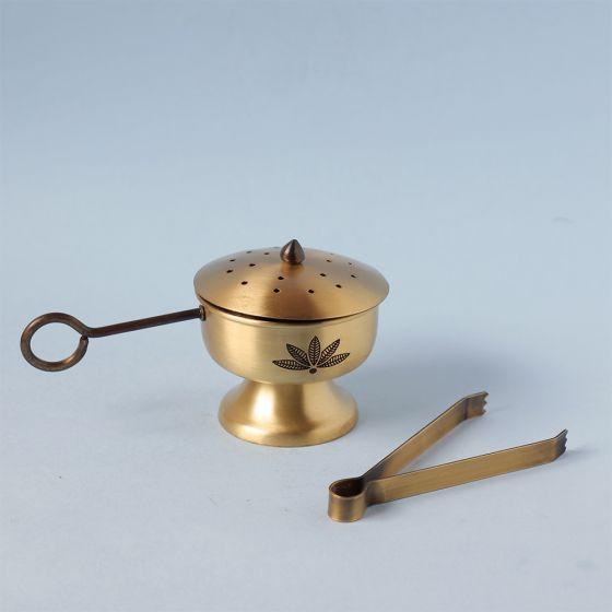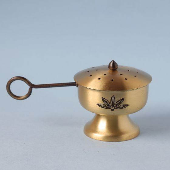 Heres a powerful way to elevate the atmosphere around you. Made of brass and exquisitely designed, this Gold Fumer helps you transform the air around you with the fragrance of your favorite dhoop and incense cones.Crafted with an antique gold finish, it reminds you of old Indian palaces and havelis. Gift it to your friends and family this Diwali to add a royal touch to their home decor.