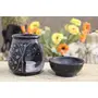 MARBLE INLAY ART AGRA - PACCHIKARI Black Marble Soapstone Handcrafted Candle Aroma Oil Diffuser and Tea Light Burner. Floral Carving Perfect for Gifting and Home Decor.