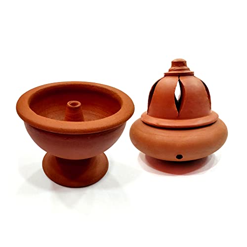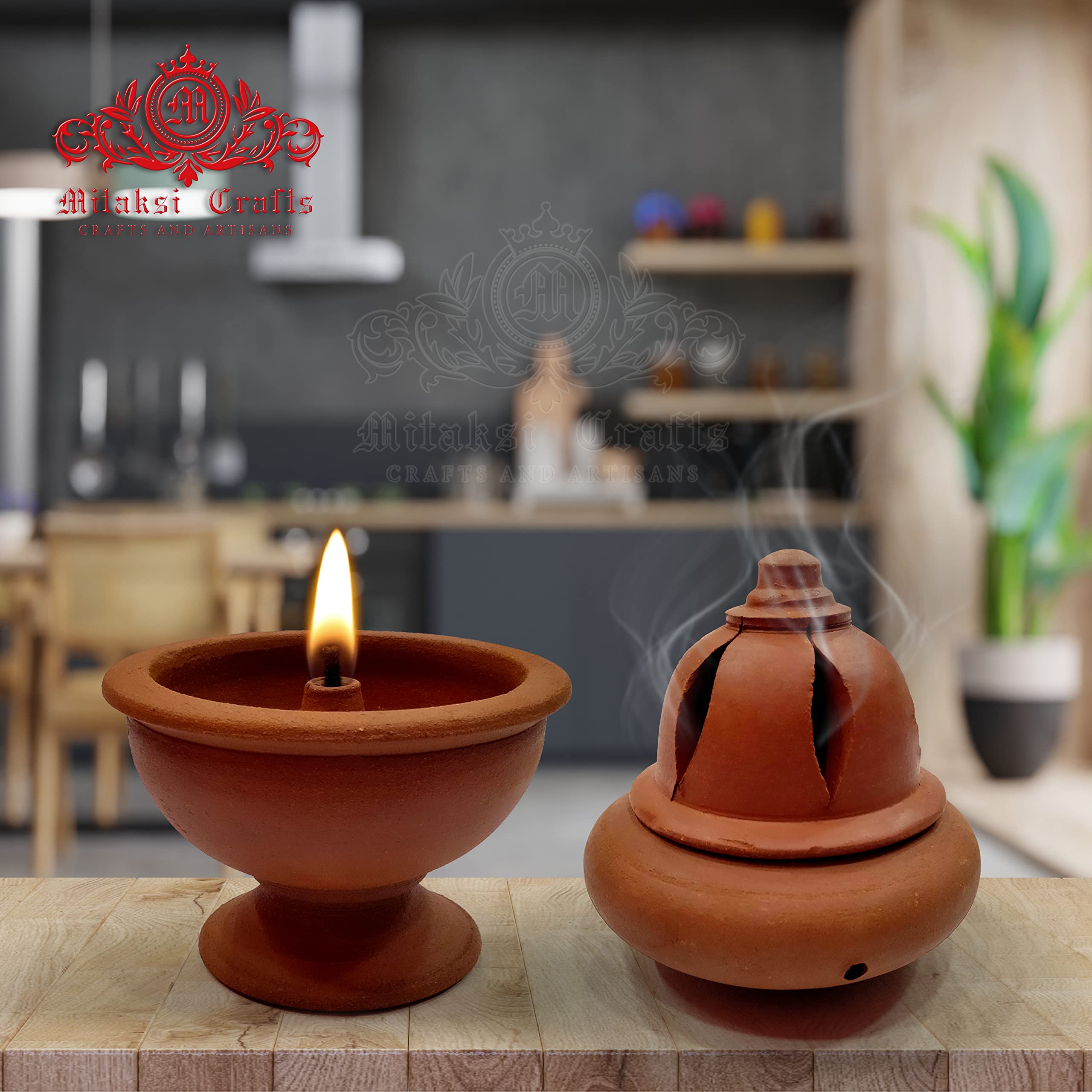 HomeHomeHome AccentDiffuserMITAKSI Crafts Mitti ka Diya With Centre Wick, Dhoop Diffuser, Holder, Sambrani Combo Pack, Terracotta, for Diwali, Pack of 2, Festive Collection, Gift Item