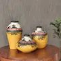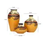 KHURJA POTTERY Madhubani Jungle Yellow Handpainted Terracotta Flower Vase Terracotta Decorative for Home Decor Earthen Flower Vases Pots for Home & Office (Set of 3)