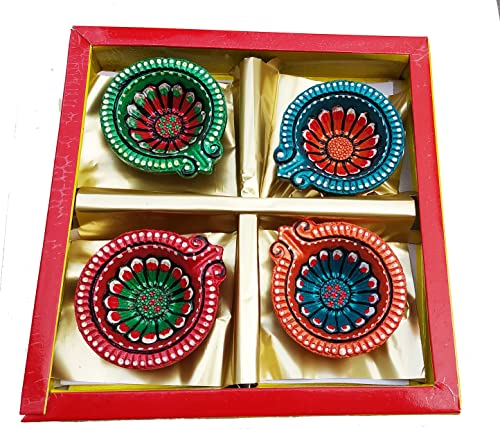 Forty Wings Set of 4 Decorated Hand Painted Terracotta Handmade Traditional Clay Mitti Diya Oil Lamps Pooja Diya for Diwali Ganpati Navratry Pooja Diya for Diwali Decoration Diwali Lighting