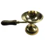 WOOD CARVING WORK beautiful brass traditional design diya (oil lamp/ kapoor lamp) for pooja/ puja/ deepak with wooden handle (golden colour 5.5 inches long x 2.25 inches in diameter x 2.25 inches in height; weight 60 grams. This camphor aarti Diya is ideal for burning solid dhoop and camphor. Best For puja and gifting