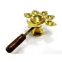 WOOD CARVING WORK beautiful unique handmade BRASS PANCH AARTI GHEE/ OIL/ CAMPHOR BURNER LAMP (pancha-mukhi: five-faced) with wood handle perfect for worship place as well as special occasions/ festivities (1 piece; 7.5 x 5 x 3 inches; around 110 grams). Helps maintain spirituality peace harmony good luck wellness etc.