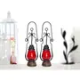 Red Wooden Glass Lantern Size(LxBxH-4.5x4.5x15.25) Inch Pack Of 2 Set a cozy romantic vibe at your home with this beautiful pink wooden lantern from Desi Karigar. Exuding a blend of contemporary and traditional touch this lantern can be placed on your bed side table or hung in your balcony. Fit a bulb inside the lantern and relax in the aura of soft warm light. Inspired by vintage beauty this lantern will add a unique accent to the decor of your home. It is a wonderful gifting option for your family and friends this festive season.Colour :-Red Material Used :- wood iron and glass Package Contents :- 2 Lantern"