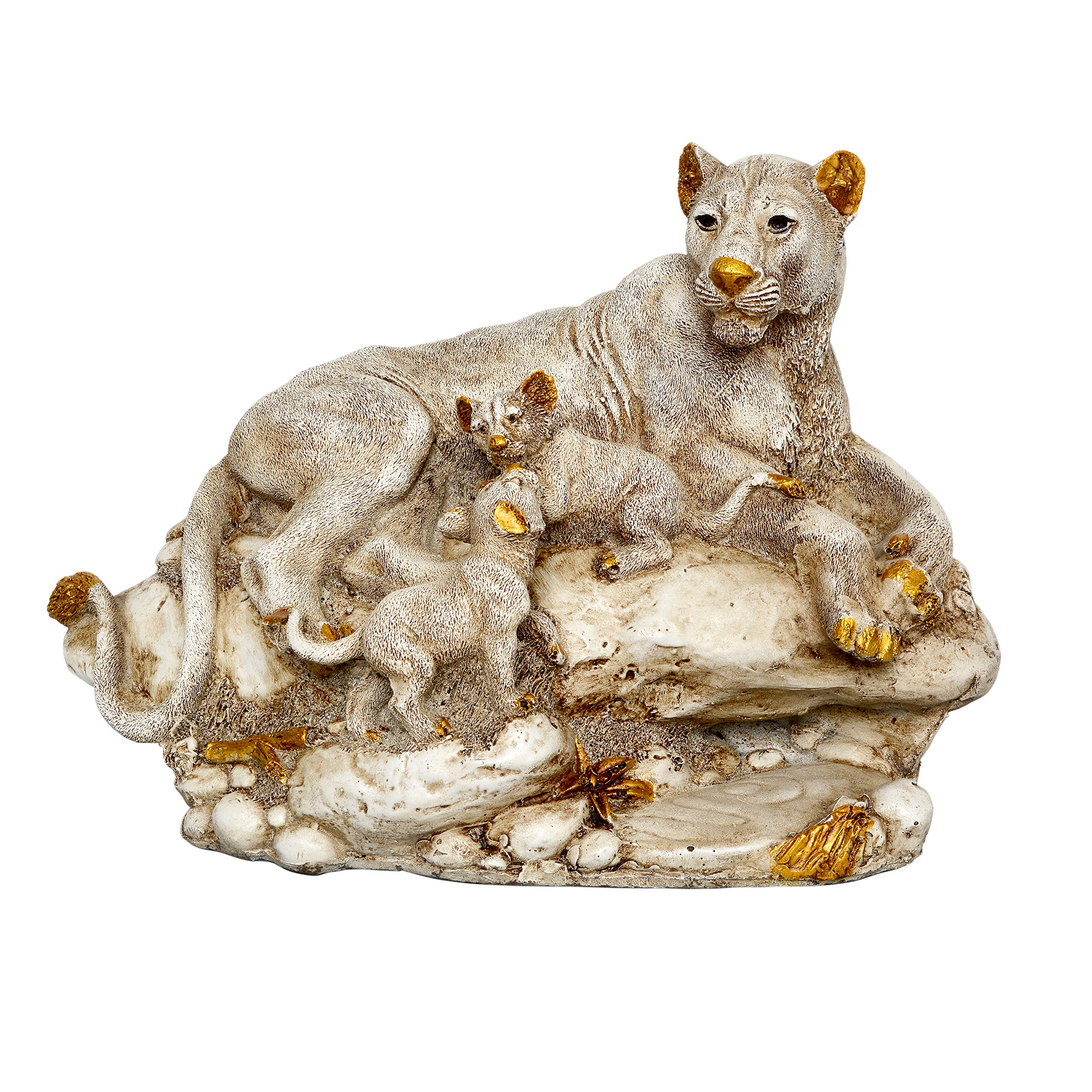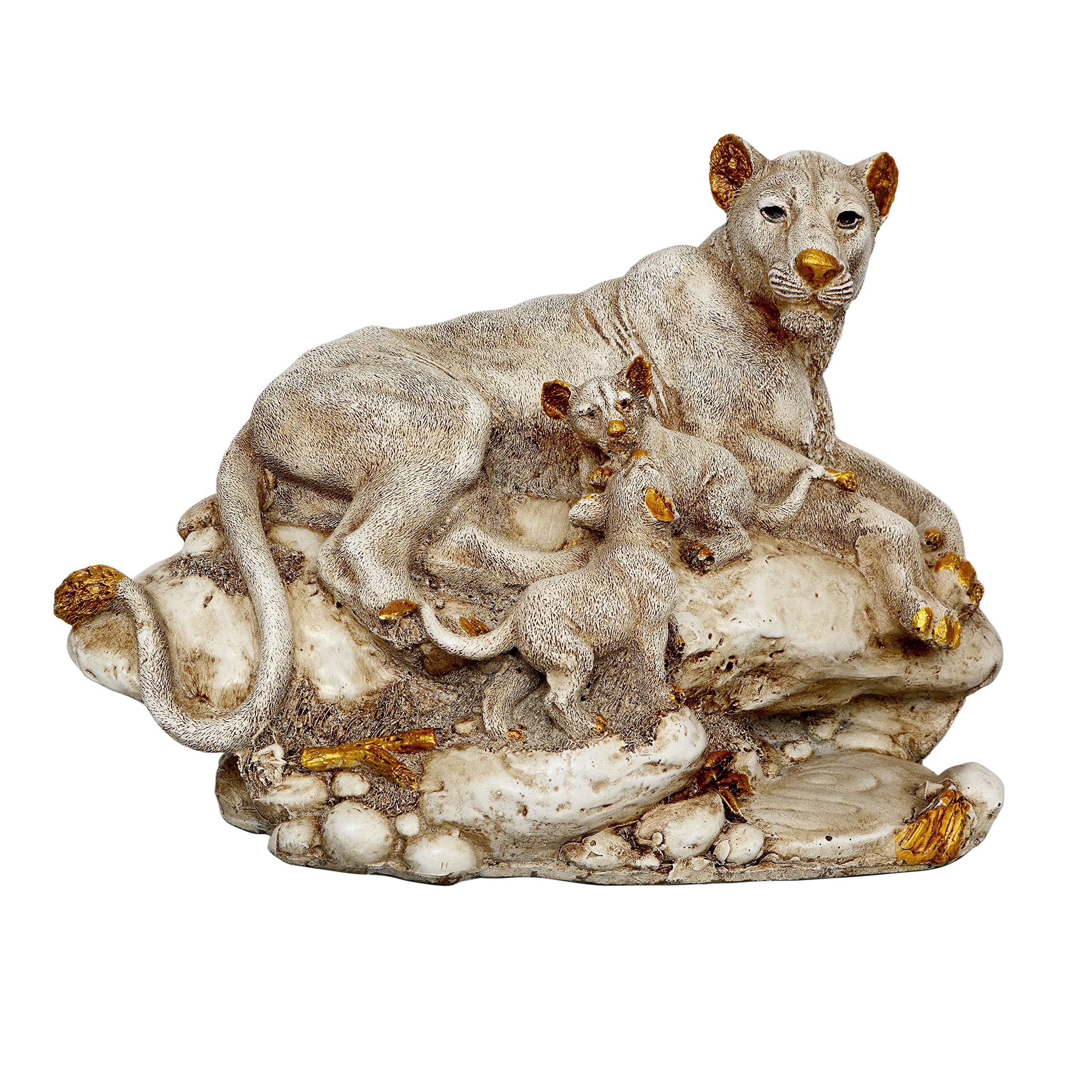 AONA Polyresin Lion Family Home Decor Action Showpiece(Multicolor11 Inch)