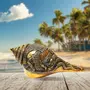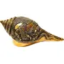 athizay® Brass Shankh Antique Gold Metal Vishnu Laxmi Darbar Engraved for Puja Temple Decor Antique Finish Conch Metal Shankha (13 x 9 x 8 cm)