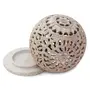 BKRAFT4U Unique Hand Carved Tealight Holder Sphere Shaped Made From Soapstone With Intricate Tendril Openwork Floral Decorative Lantern.