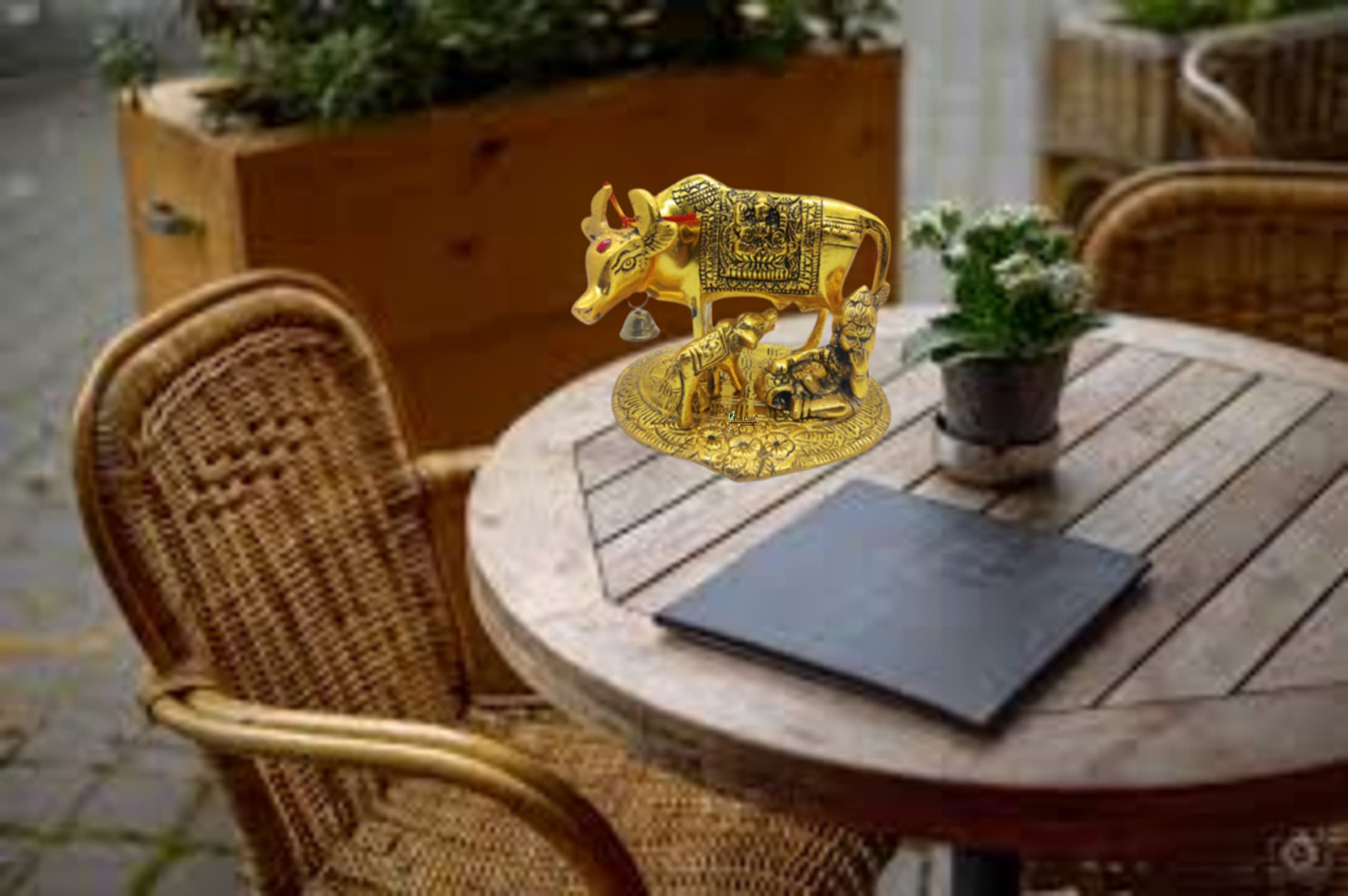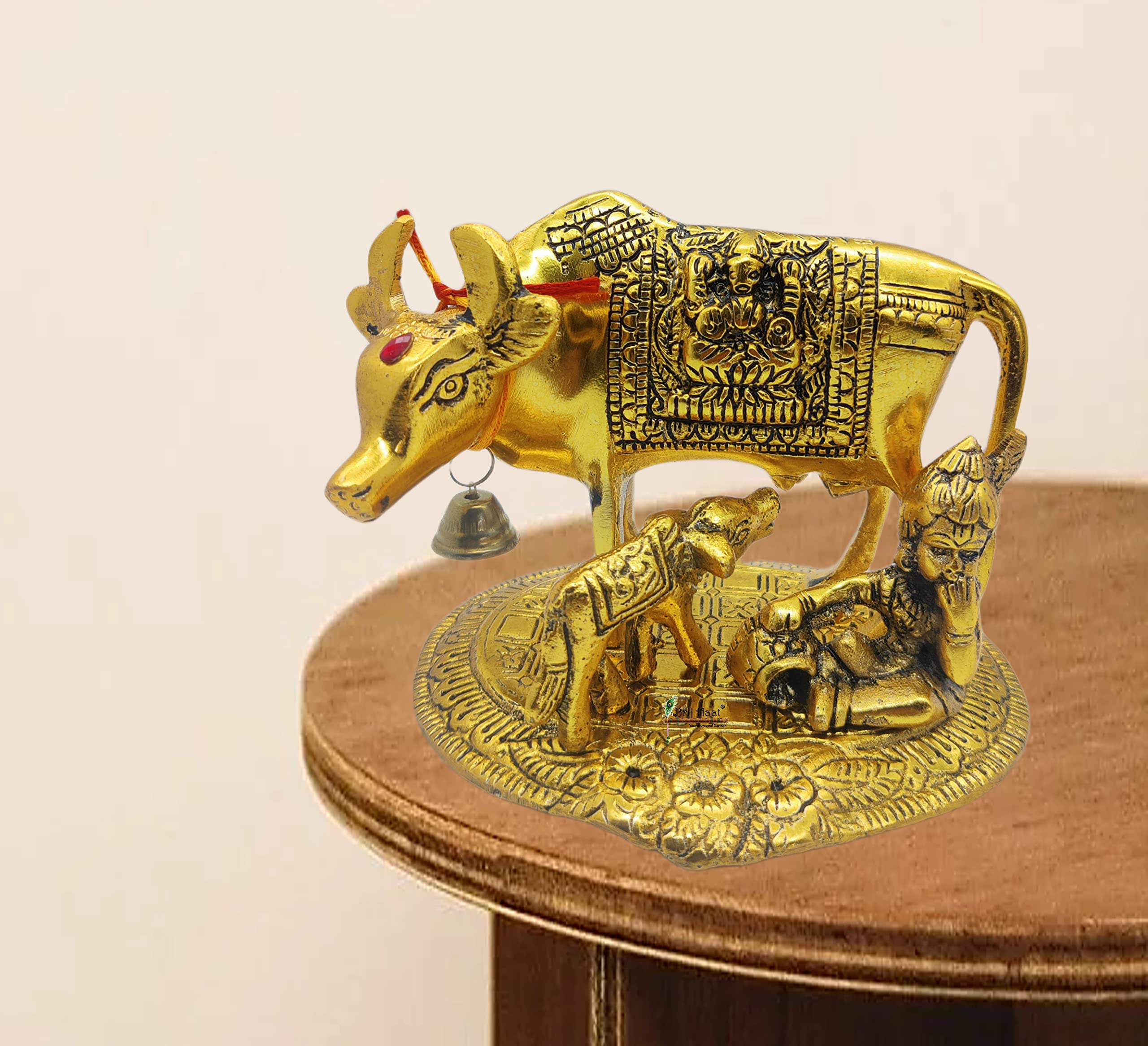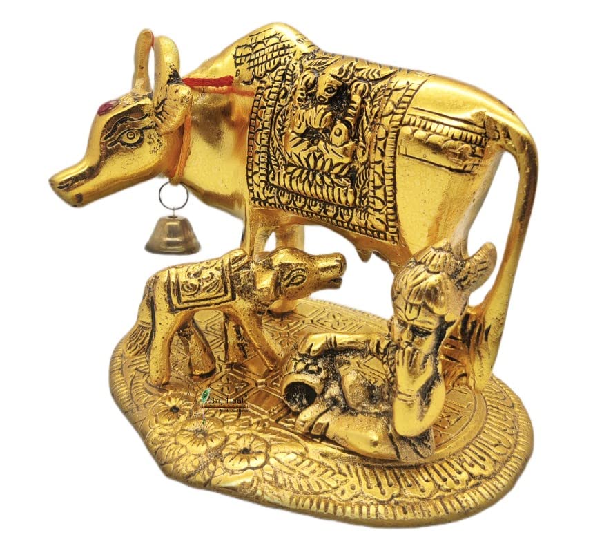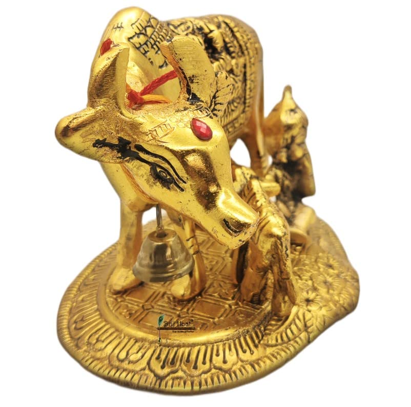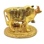 BRIJ HAAT Kamdhenu Cow and Calf Metal Showpiece for Home Decoration and Decorative Gift Item @17cm Gold