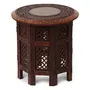 Wooden carved foldable table with fine carving & brass inlay work. Fully handcrafted table can be used for keeping flower vases or other decor pieces. Also one can fold the table when not in use. Wooden carved foldable table is made from high quality sheesham wood with high finishing.Color :Brown Material : Wood Size : LXBXH- 12 inch 12 inch 12 inch Care Instruction : Clean with a dry cloth "