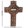 Desi karigar wooden cross is made of high quality durable long life solid mango wood with antique finish. It adds warmth and character to any room with this beautiful cross. Its clean simple lines and edge detail complement any room decor. Enhance the room decor with this beautiful wooden Jesus cross . Versatile cross from the house of desi karigar. This wooden cross can be hanged on any wall. Bring home a fusion of style and beauty with this beautiful cross made by the craftsmen of desi karigar Saharanpur. Speciality: · handmade with pure mango wood with antique finish · authentic and unique design to decorate your room · beautiful design with antique polish which gives it antique look · adorned with a unique shape which gives it an indigenous appearance · best cross design with complex engineering · strong and durable · made by rural artisans of desi karigar brand Saharanpur usability: · can be used for decorating your room · can be used in church · will give you a variation from regular plastic glass and steel cross · will increase your decor value when you place them on your wall · can be gifted during house warming ceremony Easter Christmas etc. · can be gifted to friends relatives etc. This wooden cross is hand made and produced out of sustainable natural wood. This wooden cross serves as a nice showpiece itself. This wooden cross suits perfectly as decoration of your room. Each wooden cross is individually branded by the natural grains of the wood and the touch of the craftsman of desi karigar. Desi karigar brings you the best of Indian handicraft products from all around India made by the rural artists. Their classic design and structure makes them a must have art amongst those who love collecting distinct showpieces. Their beautiful design detailed carving and lovely structure together make it a desirable accessory for your home.