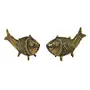 DHOKRA CRAFT Dhokra Metal Handcrafted Collectible Figurine Pair of Small Netted Golden Fish for Home Decor | Desk Decor (11 cm)