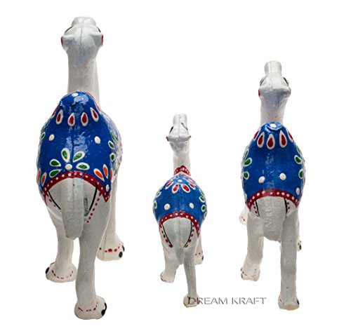It is a traditional item made up of Paper mache material. This is an Indian handmade 3 Elephant handart. Each elephant has been handcrafted hand printed with mineral beads. This Decorative showpiece gives a regal touch to your home with this patch and embroidery work. Highlighting the fine and intricate detailing this beautiful vintage art surprise for loved one; A Beautiful Piece of True Indian Art for Living Rooms A Nice Gift Item For Indian Art Lovers.About Paper Mache Crafts:Paper Mache Crafts is a traditional craft and is passed on from one generation to next generation in a family.it is still made by hand in small home shops where the whole family sit together and engage in the art of making Paper crafts.Making paper Mache is simple but takes a lot of time and labor. In the traditional method of making paper Mache the waste paper is soaked in water for a few days till its start getting disintegrated. The excess water is then drained out and the soaked paper rice straw cloth and bonding agents are mixed well to get a pulp. This pulp is now placed in mould and left for three or more days to dry. After it is dry the shape is cut away from the mould into two halves and then glued again. It is then coated with a layer of glue and gypsum and then made smooth by rubbing with stone or baked piece of clay. Layers of tissue are then pasted. A base color is painted on it and now it is ready for making design. The design is made with hand. Some part of design are raised a bit so as it to give dimension to design.