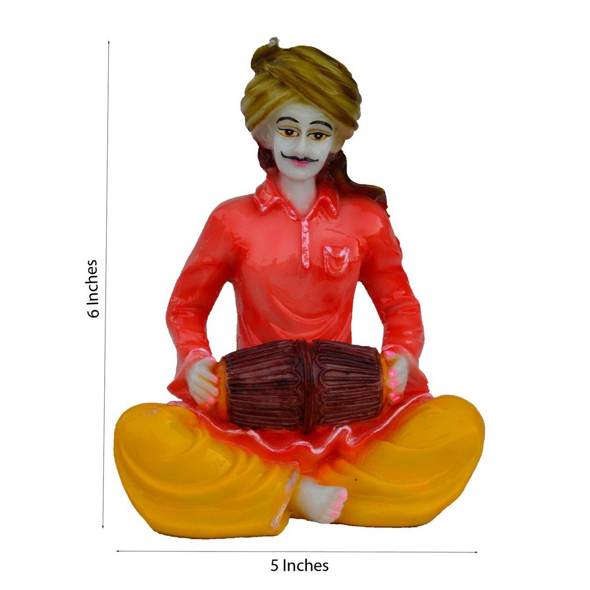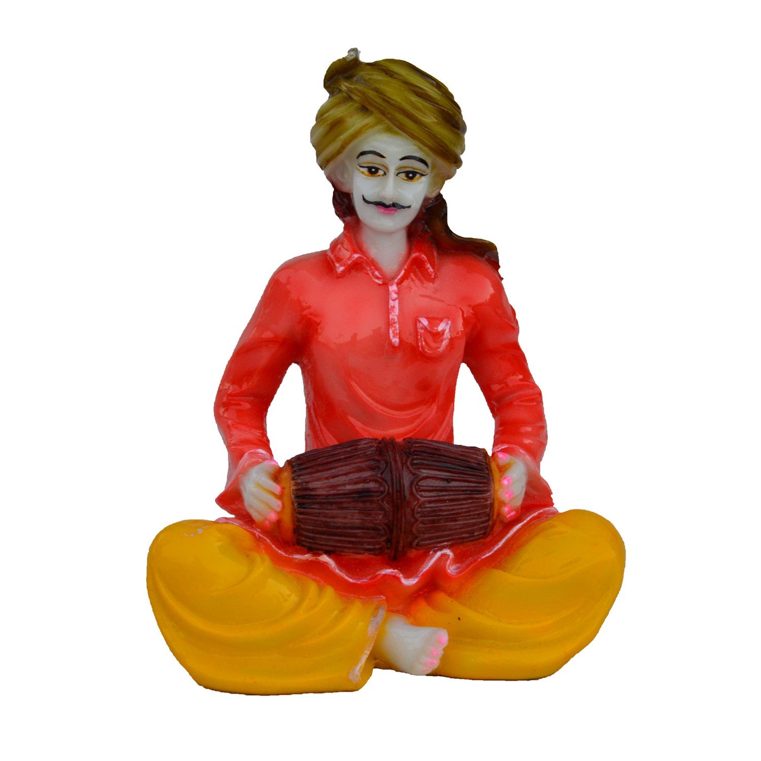 Package Content: One Polyresin Rajasthani Musician Men Statue Playing Dholak Musical Instrument Human Figurine Decorative Showpiece