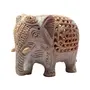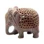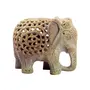 This Decorative 'must have' Showpiece Elephant is true form of fine Art produced by renowned Craftsman based in Agra India. It may not be very visible in Photos but there is a baby elephant carved inside the abdomen of larger one shown. This craftsman has done very minute yet clear details all over the Elephant. Please enlarge the pictures and look carefully at the forehead of Elephant and we are sure that you will appreciate the workmanship. This marvelous piece of art is carved from Single Piece of Stone and Hand Drilled by Artisans. It would definitely be unique home decor collection item and a perfect gift for any occasion. It is made of Soapstone (Similar to Marble but soft in nature) which is having Soap like soft feeling when touched. Size (Height x Length x Width) = 3" Inches x 3.5" Inches x 2.5" Inches and Weight of Elephant Approx 342 grams.