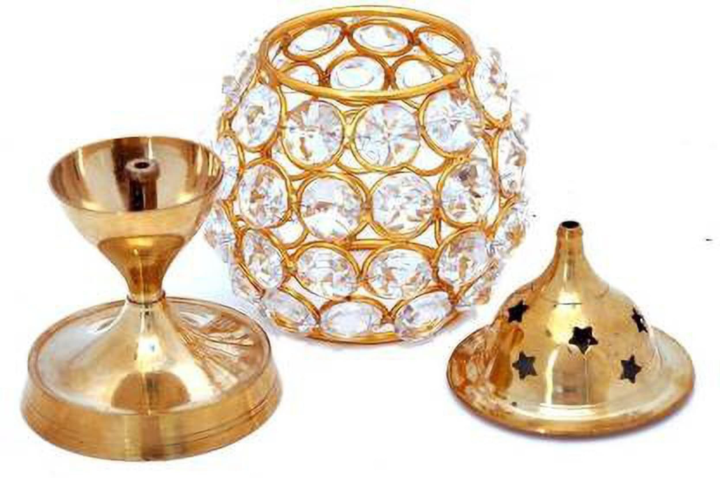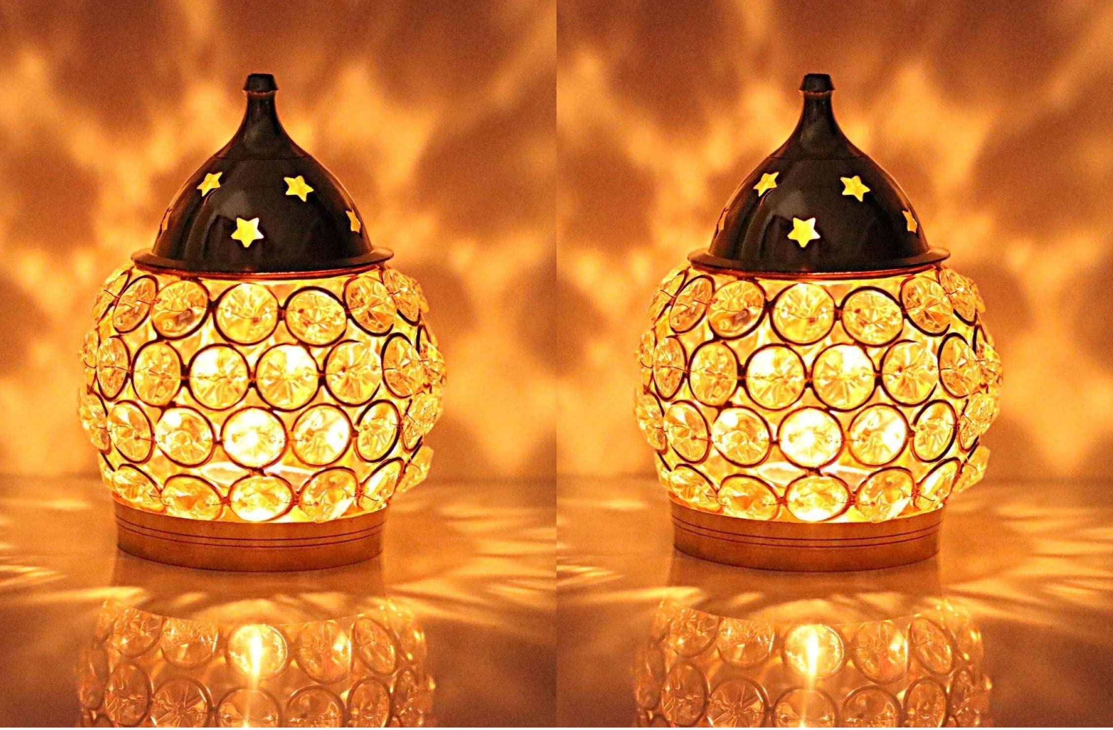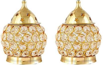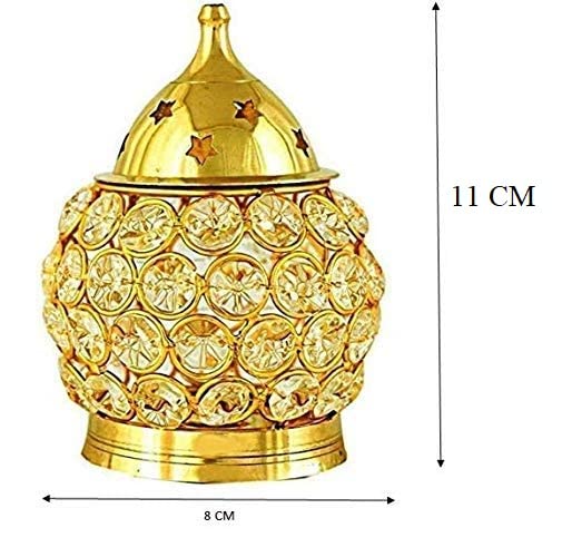 Fashion Bizz Brass Akhand Diya | Diamond Crystal Deepak/Dia | Akhand Jyot | Decorative Brass Crystal Oil Lamp | Tea Light Holder Lantern Puja Lamp Table Diya Hight 4.5 (Pack of 2)