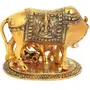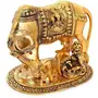 Fashion Bizz Large Elegant Kamdhenu Cow and Calf Metal Statue with Krishna Decorative Showpiece - 16 cm (Aluminium Gold)