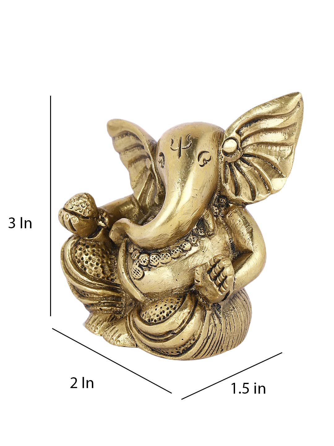 Ganesha Brass Statue Sitting Ganpati Figurine (3 x 2 Inches)