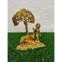 GiftNagri Gold Plated Metal Hindu God Krishna Kanha Ji Bhagwan Murti with Gomata and Flat Tree for Worship Home Temple Mandir Decorative Office Showpiece