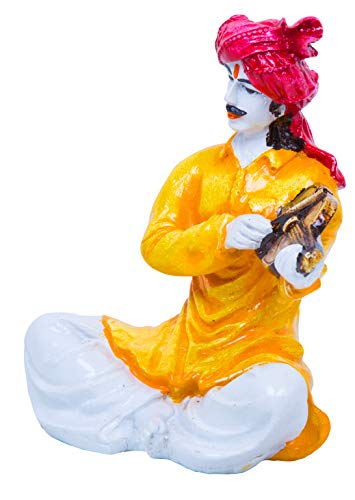 India Beautiful Hand Carved Rajasthani Men Playing Violin Polyresin Showpiece for Home Decor.