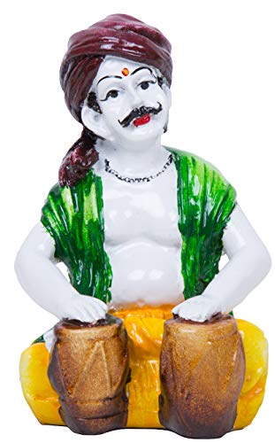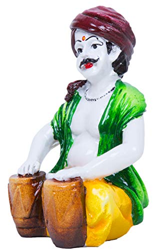 India Handcrafed Polyresin Tradition Man Playing Hand Drums Sculpture | Showpiece for Home Decor and Office.