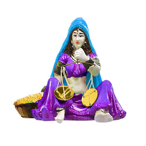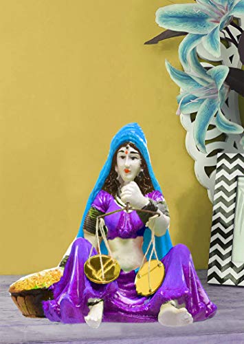 India Handcrafted Polyresine Traditiona Rajasthani Lady with Taraju Showpiece for Home Decor.