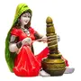 India Home Decor Beautiful Hand Carved Tradition Rajasthani Lady with Chass Polyresine Showpiece.