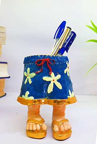 India Luxurious Collection Handcrafted Poly-Resin Beautiful Lady Dress Design Pen Pencil Stand Desk Organiser Pen Holder for Home & Office Table Decor Showpiece.
