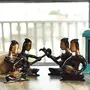 JAIPUR STONE WORK Musical Ladies Decorative Antique Brass Showpiece (35 cm x 5 cm x 10 Brown Set of 4)