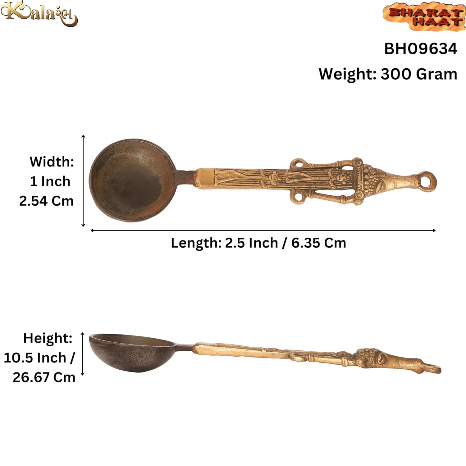 Brass Spoon Brass Table Spoon Height 10.5 Inch. Gifting Each of our products are suitable for gifting purpose. This brass decoration item enhances the decoration and gives safe and silence vibe in the home. This is perfect for home office use. A valuable personal and professional collection Made from Brass Each of these products are made of solid brass with carefully designed products suits for every possible place that this art can fit This Statue is durable and long-lasting Measuring 2.1 Ã 1 Ã 10.5 ( LÃWÃH ) AND Weighting 0.3 kg This Statue is substantial and impactful Clean by Dry Cloth and Use Pitambari Powder Specially for Brass Material