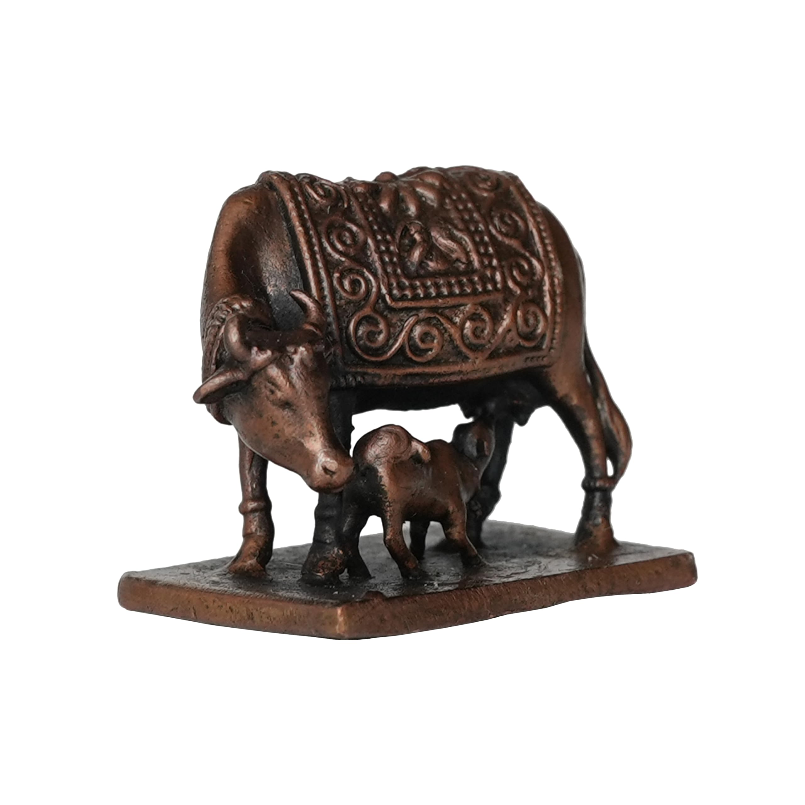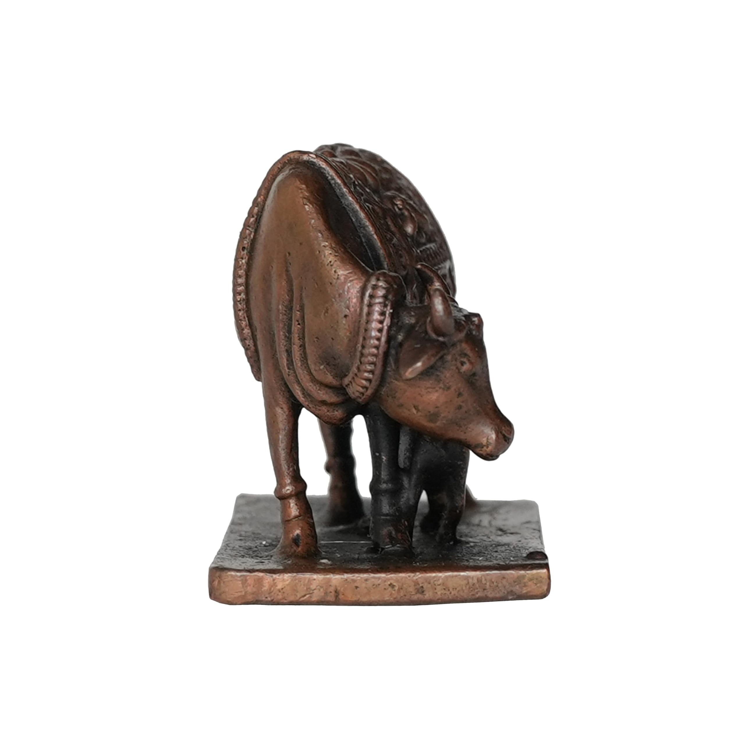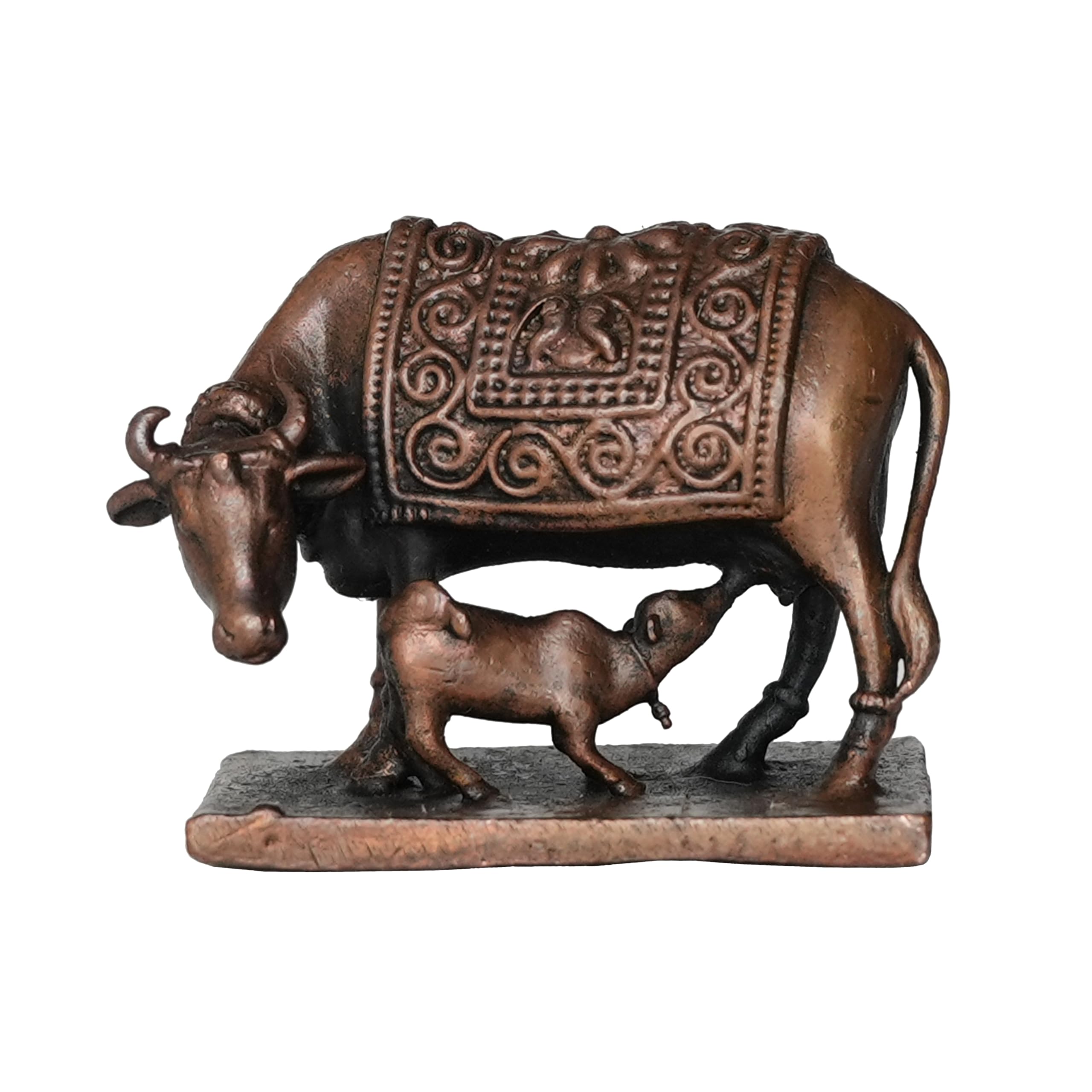 Copper Cow & Calf Set Home Office Temple Mandir Pooja Puja Room Handicraft Art Showpiece Brings Prosperity Made from Brass Each of these products are made of solid brass with carefully designed products suits for every possible place that this art can fit This Statue is durable and long-lasting Gifting Each of our products are suitable for gifting purpose. This brass decoration item enhances the decoration and gives safe and silence vibe in the home. This is perfect for home office use. A valuable personal and professional collection Measuring 4.31 Ã 2.28 Ã 3.3 (L Ã W Ã H) Cm and Weighting 90 Gram. This statue is substantial and impactful. Clean by Dry Cloth and Use Pitambari Powder Specially for Brass Material