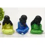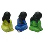Karigaari India Polyresin Meditating Monk Buddha/Laughing Buddha/Happy Man Statue Standard Blue Yellow and Green Color 3 Piece - LB1-03
