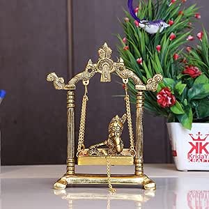 HomeHomeHome AccentFigurinesKridayKraft Laddu Gopal on Jhulla Palana Metal Statue Gold Plated Decor Your Home,Office Metal Krishna Murti,Showpiece Figurines,Religious Idol Gift Article.