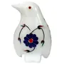 MARBLE INLAY ART AGRA - PACCHIKARI Marble Statue 'Perky Penguin': Gemstone Inlay Collectible Showpiece Gift (12110)