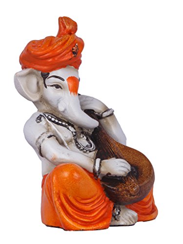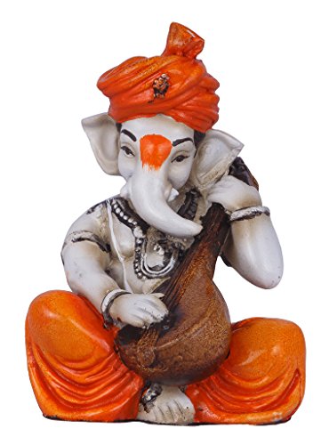 Multicolor Ganesha Playing Veena Polyresine Showpiece (12.7 cm x 12.7 cm x 12.7 cm)