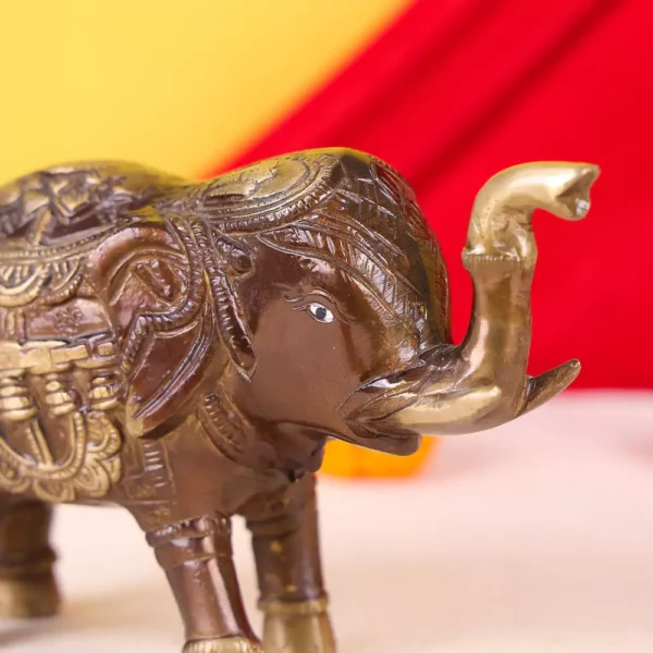 Brown Finish: The small brass elephant features a captivating brown finish adding warmth and elegance to its appearance. The rich brown colour enhances the visual appeal and complements a wide range of interior styles.