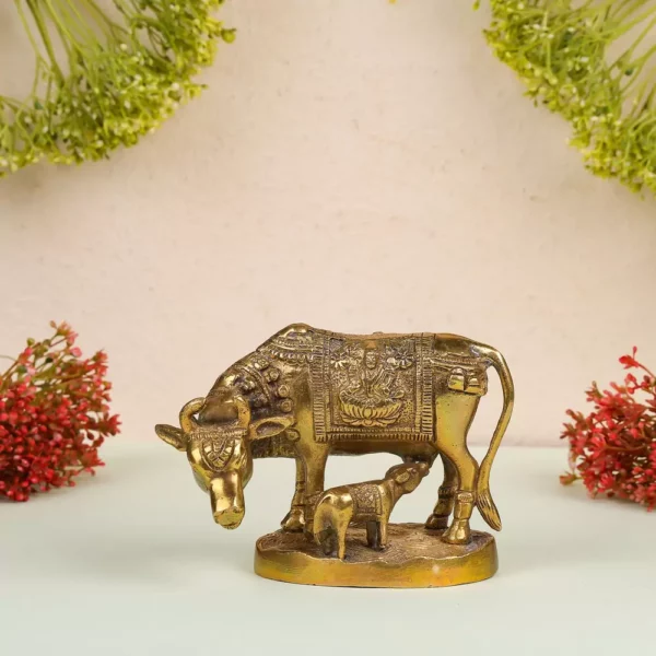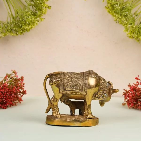 • High-Quality Material: Made from high-quality brass material the Brass Cow With Calf ensures longevity and robustness making it a cherished decorative piece that can be passed down through generations.